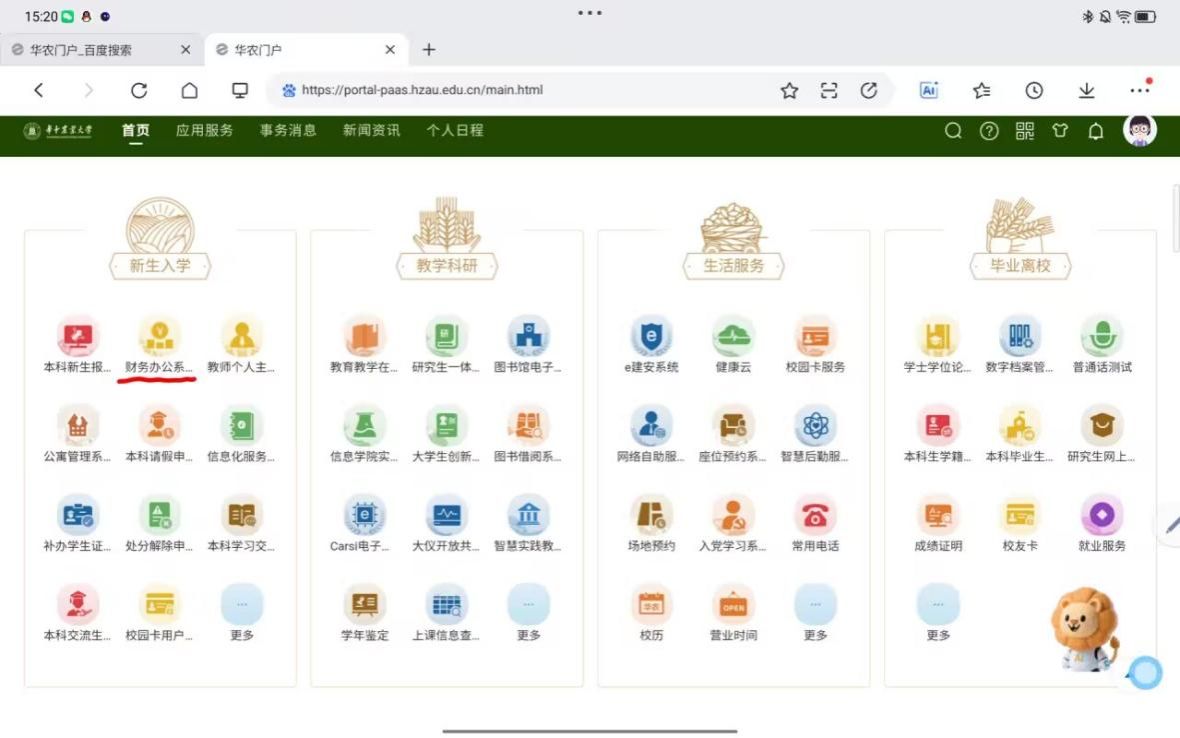 1.登录华农门户,点击进入财务办公系统