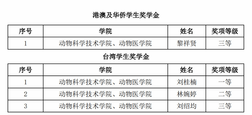 按照《关于做好2025年港澳及华侨学生奖学金、台湾学生奖学金评审工作的通知》的要求,经过学生申请、学院推荐以及学校评选,评选出港澳及华侨学生奖学金1名、台湾学生奖学金3名,获奖名单公示如下。
