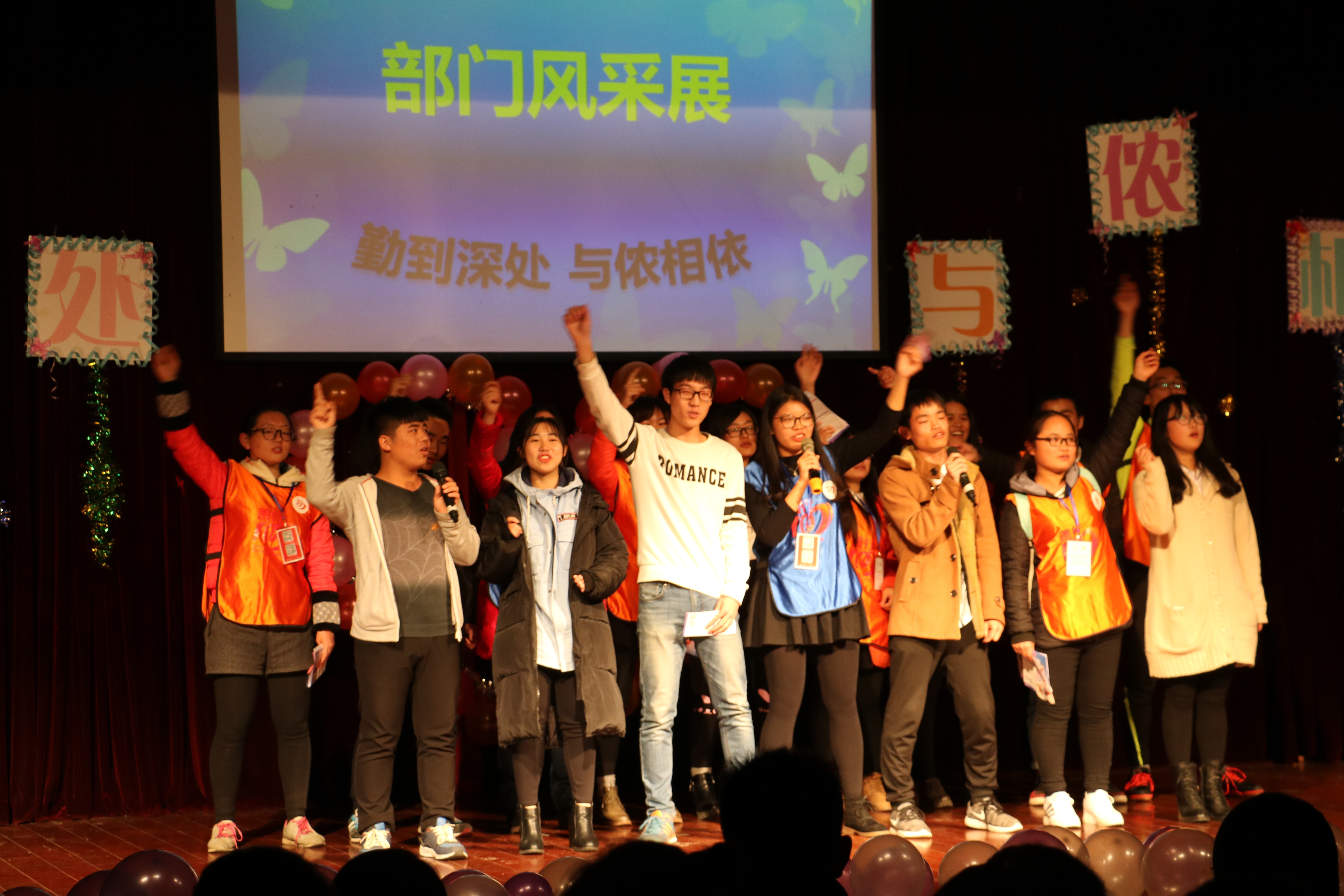 随着音乐的响起,充满青春热情的舞蹈《让我们一起跳》拉开了晚会的帷幕,接着是我校大学生勤工助学中心各个部门带来的精彩表演,有婉转悠扬的男生独唱《卷珠帘》,还有与传统文化紧密结合的《风华古韵》,更有根据“善行100”公益活动改编的小品《爱暖寒冬》等独具特色的节目。我校勤工中心的21个部门共带来了18个活动,节目不仅表达了学生对于勤工中心深沉的依恋,同时充分展现了我校参与勤工助学同学积极向上、青春乐观的精神风貌。勤不知所起,一往而情深,诗朗诵《感恩篇章》用真挚的声音,讲述对亲人、老师、同学的感激和对生命的热爱:“感谢勤工,为我们带来欢笑;感谢勤工,为我们带来家的温馨;勤到深处,与侬相依;时光不老,我们不散。”晚会在温暖的《相亲相爱的一家人》的旋律中接近尾声。